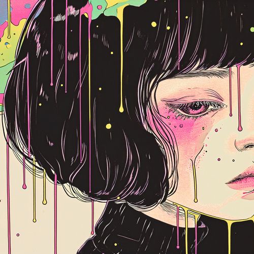 Plakat z serii pop art zatytułowany Strugi Kolorów. Ten hipnotyzujący plakat przedstawia wizerunek młodej kobiety z przymkniętymi oczami, jej twarz zdaje się być na granicy snu i jawy. Nad nią i wokół niej płyną strugi kolorów, które wydają się rozlewać jak ciecz, tworząc atmosferę oniryczną i abstrakcyjną. Kontrast między realistyczną twarzą a surrealistycznym tłem podkreśla emocjonalną głębię i złożoność ludzkich doświadczeń.Plakat ten doskonale uzupełni przestrzeń pełną kreatywności i wyobraźni, taką jak pracownie artystyczne, kawiarnie, czy nawet nowoczesne pokoje młodzieżowe. Może również stanowić niebanalny akcent w pomieszczeniach terapeutycznych lub coachingowych, gdzie rozmowa na temat emocji i wewnętrznego świata jest na porządku dziennym.