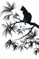 Plakat z serii wnętrza zatytułowany Na Gałęzi przedstawia sylwetkę kota siedzącego na gałęzi, zarysowaną na tle jasnego, jednolitego tła. Całość kompozycji utrzymana jest w stylu sumi-e, nawiązującym do tradycyjnej wschodniej techniki tuszem. Kontury kota i roślin są wyraziste, z delikatnymi szczegółami, które przywodzą na myśl efekt cieniowania i głębi. W tle roślinność, prawdopodobnie bambus lub tropikalne palmy, jest przedstawiona w sposób stonowany, co wskazuje na użycie gradientu cieni. Grafika ta oddaje spokój i harmonię, charakterystyczne dla azjatyckiej estetyki i sztuki. Idealnie nadawałaby się jako dekoracja w przestrzeniach inspirowanych minimalizmem i naturą.