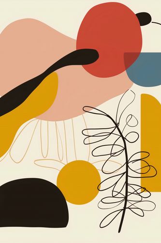 Plakat z serii minimalistyczne zatytułowany Rapsodia Barw. To dynamiczne dzieło sztuki przedstawia zbiór abstrakcyjnych kształtów i linearnych motywów roślinnych na tle o pastelowej palecie barw. Gra form i linii w różnorodnych odcieniach - od głębokiej czerni przez żółcie, beże, róż i stonowany niebieski - przypomina muzyczną kompozycję w wizualnej formie. Ten plakat będzie doskonałym akcentem w nowoczesnych wnętrzach, w których dominują czyste linie i stonowane kolory, ale potrzebują one odrobiny żywych, ciepłych akcentów. Nadaje się do przestrzeni mieszkalnych, takich jak salony czy sypialnie, a także do kreatywnych przestrzeni pracy, takich jak biura i studia projektowe.