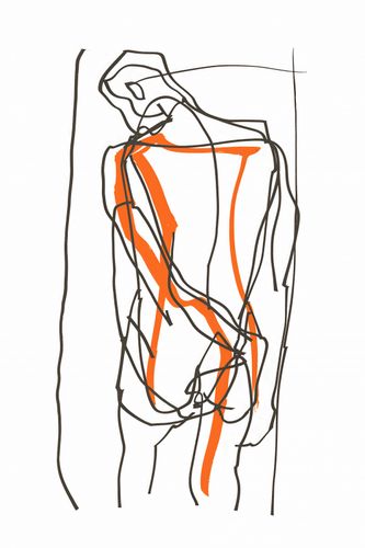 Plakat z serii minimalistyczne zatytułowany Ruch i Akcent. Grafika wykorzystuje dynamiczny zarys, aby przekazać poczucie ruchu i energii. Grube, czarne linie szkicują formę, która może być interpretowana jako postać w ruchu, a intensywne, pomarańczowe akcenty dodają dziełu dramatyzmu i głębi. Sama forma jest tylko nakreślona, pozostawiając wiele miejsca dla interpretacji widza. Całość zdaje się być złapanym w locie fragmentem większej narracji, momentem zawieszonym między akcją a spoczynkiem.Plakat wniesie do przestrzeni surową, artystyczną energię. Idealnie nada się do awangardowych przestrzeni, jak loftowe apartamenty, studia artystyczne czy nowoczesne biura, gdzie może stać się punktem zaczepienia dla oka i inspiracją do kreatywnych dyskusji.