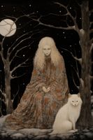 Plakat z serii wnętrza zatytułowany Stróżka Leśna. Ta eteryczna praca artystyczna ukazuje postać kobiecą, owiniętą w szatę z motywem leśnym, zatopioną w kontemplacji pod gałęziami drzew oplecionych przez śnieg i w blasku pełnego księżyca. Jej spokojna obecność i blady odcień skóry kontrastują z ciemnością nocy, a towarzyszący jej biały wilk dodaje elementu dzikości i tajemniczości. Plakat oddaje uczucie spokoju i jedności z naturą, a jednocześnie wzbudza ciekawość dotyczącą ukrytych opowieści i starych legend. Idealny dla miłośników fantastyki, mitologii, oraz tych, którzy pragną wprowadzić do swojego wnętrza elementy oniryczne i magiczne.