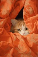 Plakat z serii wnętrza zatytułowany Ukryty Kot. Uroczy kot o miękkim, złoto-rudym futrze spogląda na świat z bezpiecznej kryjówki, otulony w żywo pomarańczową tkaninę z delikatnym wzorem. Jego przenikliwe oczy i ostrożna postawa kontrastują z ciepłymi kolorami materiału, tworząc obraz pełen ciepła i domowego uroku. Ten plakat doskonale oddaje charakterystyczną dla kotów mieszankę niezależności i potrzeby komfortu. Idealny do dodania odrobiny osobowości i uroku w każdym pomieszczeniu, zwłaszcza w przestrzeniach mieszkalnych, gabinetach weterynaryjnych lub sklepach zoologicznych. Jest to również świetny wybór dla miłośników tych tajemniczych i pełnych wdzięku zwierząt.