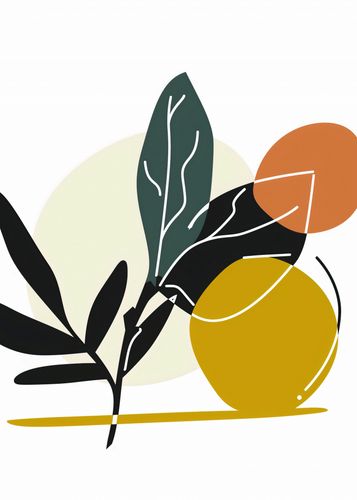 Plakat z serii minimalistyczne zatytułowany Elegancka Flora. Przedstawia on abstrakcyjną kompozycję roślinnych form na tle geometrycznych kształtów, tworząc przestrzeń pełną lekkości i harmonii. Kolorystyka oscyluje wokół spokojnych tonów żółci, czerwieni i głębokiej czerni, które razem wyrażają równowagę i nowoczesną estetykę. Plakat ten będzie doskonałym uzupełnieniem dla nowoczesnych wnętrz domowych, biurowych lub komercyjnych, które chcą wprowadzić elementy natury w stylizowanej, artystycznej formie. Idealnie nadaje się do przestronnych salonów, gabinetów lub jako wyrafinowany akcent w minimalistycznych, dobrze oświetlonych pomieszczeniach.