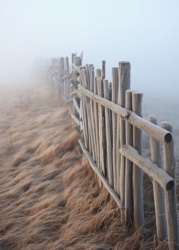 Plakat z serii pejzaże zatytułowany Mgła nad Wydmami. Prezentuje on eteryczny widok na drewniane ogrodzenie, które wiedzie przez poszarpane, suchą trawę wydm. Delikatna mgła otula scenę, nadając jej tajemniczość i spokój, a subtelne odcienie szarości i beżu tworzą uczucie miękkości i ciepła. Ten plakat idealnie oddaje atmosferę wyciszenia i rozmyślania, sprawiając, że jest doskonałym wyborem dla przestrzeni, które mają na celu uspokojenie i relaks, jak spa, pokoje medytacyjne, czy ciche kąciki w domach. To także piękny element dekoracyjny dla wnętrz inspirowanych naturą i spokojem przyrody.