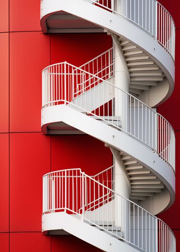 Plakat z serii wnętrza zatytułowany Schody do Niebios. Ten plakat to dynamiczne zestawienie białej, spiralnej klatki schodowej z intensywnie czerwonym tłem ściany budynku. Czyste linie, krzywe i kolorystyczny kontrast tworzą wyrafinowaną kompozycję, która łączy funkcjonalność z estetyką. Idealny dla nowoczesnych przestrzeni komercyjnych i mieszkalnych, które chcą wnieść element współczesnego designu i architektonicznej odwagi, ten plakat jest doskonałym wyborem dla miłośników designu, architektów oraz wszystkich, którzy cenią sobie wyrazistość i mocne, wizualne wrażenie.