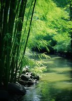 Plakat z serii natura zatytułowany Spokój Bambusów. Ukazuje on idylliczny zakątek przyrody, gdzie zielone pędy bambusa delikatnie zginają się nad błogim, spokojnie płynącym strumieniem. Gra światła i cienia na liściach bambusa tworzy wrażenie głębi i spokoju, zaś szemrząca woda dodaje uczucie świeżości i czystości. Ten plakat oddaje piękno i spokój odosobnionego zakątka natury, jest więc idealny dla przestrzeni relaksacyjnych takich jak spa, pokoje do medytacji lub jako ukojenie w zgiełku codzienności w domowych wnętrzach. To doskonała dekoracja dla tych, którzy pragną wprowadzić element natury i harmonii do swojego otoczenia.