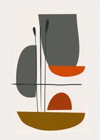 Plakat z serii boho zatytułowany Współgranie to odważne połączenie kształtów i kolorów, gdzie każdy element współgra z innymi, tworząc zbalansowaną całość. Zachowując estetykę mid-century modern, dzieło łączy w sobie ciepłe odcienie brązu, ochry oraz głęboką czerwień z neutralnymi szarościami i czernią. Abstrakcyjne formy przypominające naczynia i rośliny nakładają się na siebie, tworząc iluzję głębi i perspektywy. Delikatne linie nadają kompozycji strukturę i porządek. Ten plakat będzie wyróżniającym się dodatkiem do każdego nowoczesnego wnętrza, idealnie komponując się w przestrzeniach, gdzie dominuje prostota i spokój, jak minimalistyczne salony, stylowe biura czy ciche kąciki do czytania.