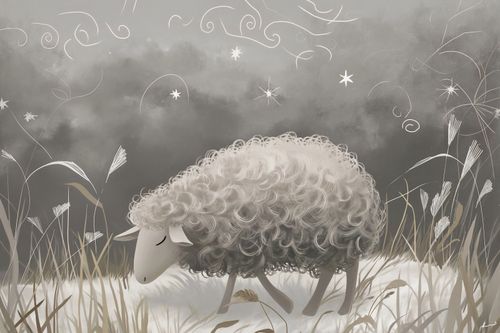 Plakat z serii wnętrza zatytułowany Bujna Owca. Ukazuje on idylliczny obraz owcy o bujnej, puszystej wełnie wśród delikatnej roślinności, z mistycznymi, snującymi się liniami i gwiazdami w tle, tworzącymi atmosferę spokoju i magii. Monochromatyczna paleta barw, z akcentami bieli i szarości, wzmaga uczucie łagodności i odprężenia. Całość kompozycji jest subtelnym przypomnieniem o potrzebie odpoczynku i harmonii z naturą. Plakat ten idealnie nadaje się do przestrzeni zapewniających spokój, takich jak sypialnie, pokoje dla dzieci, miejsca medytacji lub terapeutyczne przestrzenie relaksacyjne. Wprowadzi on do każdego wnętrza element wyciszenia i zachęci do chwil refleksji i spokoju.