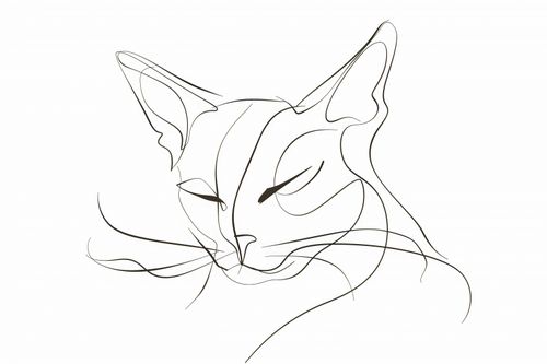 Plakat z serii wnętrza zatytułowany Linijny Kot. Prezentuje minimalistyczny, jednoliniowy rysunek kota. Sylwetka zwierzęcia została zredukowana do kilku płynnych linii, które z gracją oddają kształt głowy, uszu i rysy twarzy, w tym oczy i nos. Styl ten jest znany z tego, że w elegancki sposób uchwyci esencję swojego przedmiotu przy minimalnym użyciu detali. Tło plakatu jest czyste i jasne, co pozwala zarysom kota stać się dominującym elementem. Ten rodzaj sztuki idealnie nadawałby się do nowoczesnego wnętrza, które ceni sobie elegancję i prostotę, i może przyciągać wzrok jako subtelny, ale wyrafinowany element dekoracyjny.
