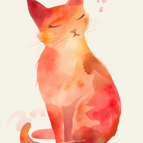 Plakat z serii wnętrza zatytułowany Akwarelowy Kot przedstawia akwarelową ilustrację spokojnego, zamyślonego kota. Kot zamyka oczy w zadowoleniu, a jego sylwetka płynnie przechodzi w bogatą paletę ciepłych odcieni czerwieni i pomarańczu, co nadaje dziełu wrażenie spokoju i ciepła. Delikatne plamy i rozmycia barw typowe dla akwareli tworzą wrażenie lekkości i przestrzeni, a jednocześnie podkreślają łagodność i spokojny nastrój plakatu. Jest to doskonały wybór dla tych, którzy pragną wprowadzić do swojego domu element relaksu i spokoju. Plakat ten idealnie wpasuje się w przestrzeń taką jak przytulna kawiarnia, zakątek do czytania w domowej biblioteczce lub pokój dziecinny, gdzie może inspirować do spokojnego snu i odpoczynku.