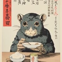 Plakat z serii motywy wschodnie zatytułowany Chwila Refleksji. Intrygujące spojrzenie gryzonia w tradycyjnym stroju, podkreślane przez błękitną tunikę i precyzyjne detale, które nadają mu humanoidalnego charakteru. Czerwone naczynia oraz kanji w tle kontrastują z jasnymi barwami obrazu, dodając nuty głębi i dziedzictwa kulturowego. Subtelna gra światła i cienia na stoliku z jedzeniem i napojem wzbogaca kompozycję i zachęca do refleksji nad połączeniem tradycji z nowoczesnością. Świetnie sprawdzi się w kawiarniach o azjatyckim klimacie, galeriach sztuki oraz w przestrzeniach dedykowanych kulturze Wschodu.