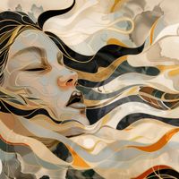 Plakat z serii abstrakcja zatytułowany Głębia. Prezentuje abstrakcyjne, stylizowane przedstawienie twarzy kobiety, zatopionej w płynnych, onirycznych formach przypominających fale lub wstęgi tkaniny. Szeroka gama barw, od głębokich czerni, przez delikatne beże, aż po złote i pomarańczowe akcenty, tworzy bogatą paletę kolorystyczną. Kontury twarzy są wyraźne i zmysłowe, z zamkniętymi oczami i lekko rozchylonymi ustami, co może sugerować stan zadumy lub ekstazy. Artystyczne linie tworzą złudzenie ruchu i płynności, a cała kompozycja jest zarówno dynamiczna, jak i harmonijna. Plakat ten może być interpretowany jako metafora piękna ludzkiego ducha, muzyki, sztuki lub emocji. Idealnie nadawałby się do eleganckich, nowoczesnych wnętrz, gdzie może stanowić główny punkt wizualny, przyciągając uwagę i inspirując do refleksji.