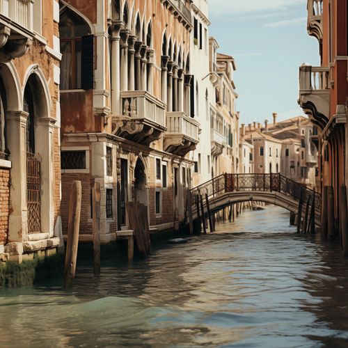 Plakat z serii pejzaże zatytułowany Wenecjańska Uroda, obraz ukazuje spokojny kanał w Wenecji, gdzie woda płynie leniwie, odzwierciedlając zabytkowe fasady wąskich domów. Delikatne światło rozlewa się po kanałach, a mały, kamienny most łączy ze sobą dwie tajemnicze ulice, dodając scenie romantycznego uroku. Ta idylliczna sceneria przenosi widza do serca włoskiej elegancji, pełnej historii i spokoju. Idealny do zawieszenia w przestrzeniach, które cenią klasykę i subtelne piękno, takich jak eleganckie salony, tradycyjne restauracje czy hotelowe lobby.