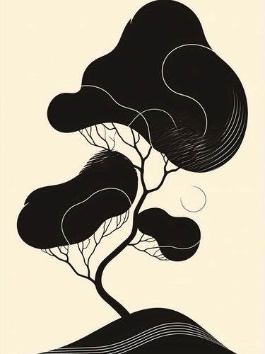 Plakat z serii minimalistyczne zatytułowany Echo Wiatru. Przedstawia abstrakcyjne drzewo z masywnymi, dynamicznymi kształtami przypominającymi chmury lub potoki wiatru, które opływają jego smukły pień i gałęzie. Całość utrzymana jest w monochromatycznej palecie barw, co wzmacnia siluetę i nadaje dramatycznego charakteru. Plakat ten może być interpretacją siły natury i jej nieustającej interakcji z żywymi organizmami. Idealny do nowoczesnych przestrzeni, które doceniają sztukę inspirowaną naturą, będąc zarówno odważnym oświadczeniem, jak i subtelnym nawiązaniem do sił przyrody działających wokół nas.