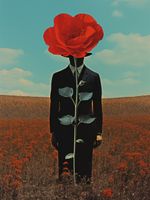 Plakat z serii abstrakcja zatytułowany Obserwator zza Maku. Ten plakat przedstawia surrealistyczny obraz człowieka z głową w formie rozkwitającego czerwonego maku, stojącego na polu pełnym kwiatów tej samej rośliny. Kompozycja gra na kontraście między ludzką postacią a bujnością natury, podkreślając połączenie człowieka z otaczającym go światem. Idealny dla przestrzeni szukających głębi artystycznej i wizualnej prowokacji, ten plakat będzie doskonałym dodatkiem do nowoczesnych salonów, galerii sztuki czy przestrzeni kreatywnych, gdzie może inspirować i wywoływać refleksję.