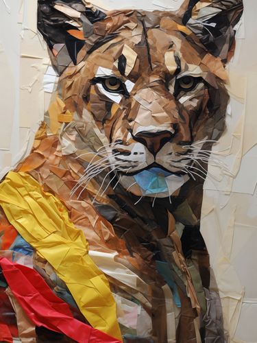 Plakat z serii wnętrza zatytułowany Papierowy Tygrys. Ta oryginalna i kreatywna ilustracja przedstawia portret tygrysa wykonany techniką kolażu z kolorowych kawałków papieru. Wykorzystanie różnych odcieni i tekstur papieru nadaje dziełu głębi i dynamiki, a jednocześnie zachowuje realistyczny obraz dzikiego zwierzęcia. Plakat ten jest wyjątkowym dziełem sztuki, które przyciąga wzrok i inspiruje, idealny dla miłośników natury i oryginalnego designu, świetnie sprawdzi się w nowoczesnych salonach, gabinetach lub jako wyrazisty akcent w przestrzeniach publicznych takich jak galerie sztuki czy kawiarnie.