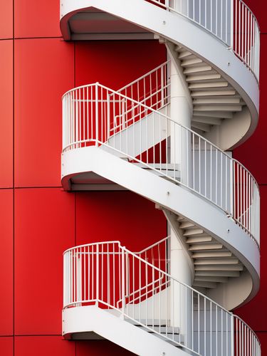 Plakat z serii wnętrza zatytułowany Schody do Niebios. Ten plakat to dynamiczne zestawienie białej, spiralnej klatki schodowej z intensywnie czerwonym tłem ściany budynku. Czyste linie, krzywe i kolorystyczny kontrast tworzą wyrafinowaną kompozycję, która łączy funkcjonalność z estetyką. Idealny dla nowoczesnych przestrzeni komercyjnych i mieszkalnych, które chcą wnieść element współczesnego designu i architektonicznej odwagi, ten plakat jest doskonałym wyborem dla miłośników designu, architektów oraz wszystkich, którzy cenią sobie wyrazistość i mocne, wizualne wrażenie.