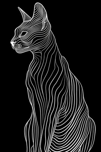 Plakat z serii abstrakcja zatytułowany Minimalny Kontur prezentuje minimalistyczny i stylowy wizerunek kota, wykonany w technice linii konturowych. Czyste, białe linie o zróżnicowanej grubości tworzą sylwetkę kota na jednolitym, czarnym tle, dając efekt elegancji i prostoty. Kompozycja skupia się na gracją i wyrafinowaną postawę kota, z wyraźnie zaznaczonymi uszami, oczami i kształtem ciała. Całość tworzy hipnotyzujący obraz, który jest zarazem współczesny i ponadczasowy, idealny dla miłośników minimalizmu, a także dla tych, którzy cenią sobie kreatywne podejście do tradycyjnego portretowania zwierząt. Plakat ten świetnie wkomponuje się w nowoczesne wnętrza, stanowiąc subtelny, ale wyrazisty akcent dekoracyjny.