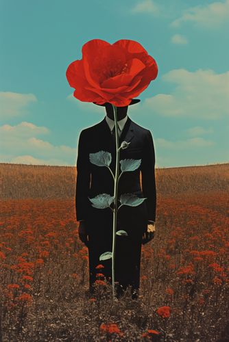 Plakat z serii abstrakcja zatytułowany Obserwator zza Maku. Ten plakat przedstawia surrealistyczny obraz człowieka z głową w formie rozkwitającego czerwonego maku, stojącego na polu pełnym kwiatów tej samej rośliny. Kompozycja gra na kontraście między ludzką postacią a bujnością natury, podkreślając połączenie człowieka z otaczającym go światem. Idealny dla przestrzeni szukających głębi artystycznej i wizualnej prowokacji, ten plakat będzie doskonałym dodatkiem do nowoczesnych salonów, galerii sztuki czy przestrzeni kreatywnych, gdzie może inspirować i wywoływać refleksję.