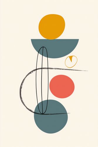 Plakat z serii boho zatytułowany Równe Kompozycje.Plakat ten czerpie z koncepcji równowagi w sztuce, ukazując złożone kształty i kolory. Kulista forma w odcieniu musztardowym spoczywa na większej, niebieskawej powierzchni, a wszystko to jest podparte przez delikatne linie i kształty, które zdają się być w ruchu. Malutkie serce w odcieniu pomarańczowym dodaje delikatnego akcentu, a ciepłe i spokojne kolory komponują się w wizualną poezję. Ten plakat wniesie harmonię i subtelny dynamizm do każdego nowoczesnego wnętrza, pasując do przestrzeni, które cenią sobie prostotę i wyrafinowanie. Jego uniwersalność sprawdzi się w domowych salonach, biurach, a także w przestrzeniach publicznych takich jak kawiarnie czy lobby, gdzie sztuka ma za zadanie uspokajać i inspirować.