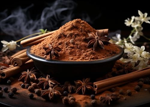 Plakat z serii święta zatytułowany Esencja Aromatu. Mocny akcent na kompozycję przypraw z cynamonem, anyżem i ziarnami pieprzu rozsypanych wokół miski pełnej mielonego cynamonu, tworzący wzór przypominający sztukę natury, wyróżnia się zarówno prostotą, jak i głębią. Delikatny dym unoszący się nad przyprawami dodaje atmosfery ciepła i domowego ogniska. Ten obraz idealnie komponuje się z kuchniami o bogatym, ziemskim wystroju, jak również z eleganckimi restauracjami oferującymi etniczną kuchnię, gdzie podkreśli uczucie przytulności i tradycji.