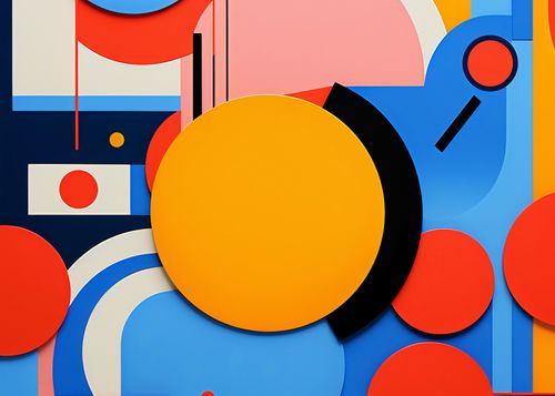 Plakat z serii geometria zatytułowany Kalejdoskop Emocji. Dynamiczna kompozycja pełna kolorowych kształtów i form przyciąga wzrok i prowokuje do refleksji. Wielowymiarowe okręgi, prostokąty i linie tworzą wizualny balet, w którym każdy element tańczy z innym w harmonii. Intensywne odcienie niebieskiego, czerwonego i żółtego kontrastują z subtelniejszymi pastelami, dodając obrazowi energii i głębi. Doskonale komponuje się w nowoczesnych biurach, kreatywnych przestrzeniach pracy oraz galeriach sztuki współczesnej.