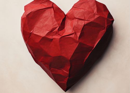 Plakat z serii wnętrza zatytułowany Kreślone Serce. Delikatne fałdy czerwonego papieru układają się w kształt serca, symbolizując skomplikowane, ale głębokie emocje. Nieregularne załamania i zgięcia dodają obrazowi tekstury i głębi, przypominając o wrażliwości i kruchości ludzkich uczuć. Pastelowe tło kontrastuje z intensywną czerwienią, podkreślając subtelność i ciepło kompozycji. Ten wyjątkowy i wzruszający projekt doskonale pasuje do romantycznych sypialni, salonów relaksacyjnych, a także miejsc związanych z terapią emocjonalną i sztuką.