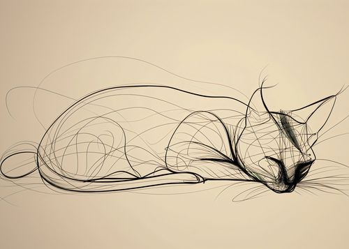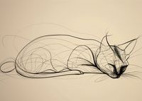 Plakat z serii wnętrza zatytułowany Odpoczynek. Prezentuje on minimalistyczne, lecz wyrafinowane przedstawienie kota odpoczywającego, wykonane za pomocą złożonych, płynnych linii. Kontury kształtujące zwierzęce ciało na złotawym tle emanują spokojem i harmonią, przyciągając wzrok swoją subtelną grą cieni i światła. Ta stylizowana ilustracja o prostocie z pogranicza abstrakcji i realizmu idealnie nadaje się do nowoczesnych przestrzeni życiowych, które cenią sobie elegancję i spokój, takich jak medytacyjne zakątki domu, ciche gabinety lub designerskie studio jogi. Plakat jest zaproszeniem do zwolnienia tempa i cieszenia się chwilą relaksu w naszym zagonionym świecie.