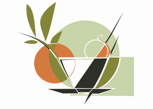 Plakat z serii minimalistyczne zatytułowany Owocowa Herbata. Prezentuje on wyrafinowaną grę form i kształtów, które przywodzą na myśl świeżość i soczystość owoców. Gładkie krzywizny i ostre linie łączą się tworząc nowoczesną kompozycję w palety kolorów zieleni, pomarańczy oraz czerni na delikatnym tle. Plakat ten doskonale wpasuje się w jasne kuchenne wnętrza, jadalnie lub nowoczesne przestrzenie kawiarniane, gdzie może stanowić żywy i pobudzający akcent. Jest to również idealny wybór do wnętrz, które poszukują lekkiego, ale wyrazistego elementu dekoracyjnego, dodającego charakteru i żywego ducha natury.