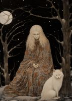 Plakat z serii wnętrza zatytułowany Stróżka Leśna. Ta eteryczna praca artystyczna ukazuje postać kobiecą, owiniętą w szatę z motywem leśnym, zatopioną w kontemplacji pod gałęziami drzew oplecionych przez śnieg i w blasku pełnego księżyca. Jej spokojna obecność i blady odcień skóry kontrastują z ciemnością nocy, a towarzyszący jej biały wilk dodaje elementu dzikości i tajemniczości. Plakat oddaje uczucie spokoju i jedności z naturą, a jednocześnie wzbudza ciekawość dotyczącą ukrytych opowieści i starych legend. Idealny dla miłośników fantastyki, mitologii, oraz tych, którzy pragną wprowadzić do swojego wnętrza elementy oniryczne i magiczne.