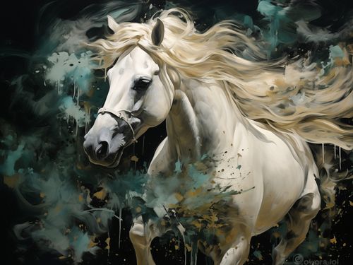 Plakat z serii natura zatytułowany Dziki Duch – dynamiczna i wyrazista kompozycja przedstawiająca arystokratycznego białego konia w pełnym galopie. Kontrast między elegancją czystej bieli sierści konia a dzikim, abstrakcyjnym tłem w odcieniach głębokiego błękitu i czerni podkreśla siłę i energię tego majestatycznego zwierzęcia. Włosy grzywy i ogona konia są przedstawione z niezwykłą szczegółowością, co daje efekt ruchu i życia. Drobne akcenty kolorystyczne w tle dodają dziełu głębi i tekstury, sprawiając, że plakat wydaje się prawie trójwymiarowy. Ten plakat to idealny wybór dla miłośników koni i natury, doskonale wkomponuje się w przestrzenie, które cenią sobie siłę, wolność i piękno natury.