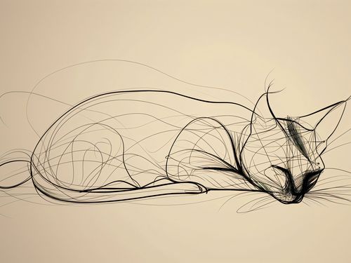 Plakat z serii wnętrza zatytułowany Odpoczynek. Prezentuje on minimalistyczne, lecz wyrafinowane przedstawienie kota odpoczywającego, wykonane za pomocą złożonych, płynnych linii. Kontury kształtujące zwierzęce ciało na złotawym tle emanują spokojem i harmonią, przyciągając wzrok swoją subtelną grą cieni i światła. Ta stylizowana ilustracja o prostocie z pogranicza abstrakcji i realizmu idealnie nadaje się do nowoczesnych przestrzeni życiowych, które cenią sobie elegancję i spokój, takich jak medytacyjne zakątki domu, ciche gabinety lub designerskie studio jogi. Plakat jest zaproszeniem do zwolnienia tempa i cieszenia się chwilą relaksu w naszym zagonionym świecie.