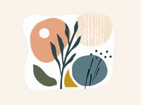 Plakat z serii boho zatytułowany Pastel Owoców.Plakat przedstawia stilizowany obraz natury, gdzie organiczne formy i kształty łączą się w nieoczywisty sposób. W kompozycji dominuje duża, pastelowa forma przypominająca owoce lub słońce, która kontrastuje z subtelnym tłem w delikatnych odcieniach beżu ozdobionym wertykalnymi liniami. Obok widnieją płynne, ciemnozielone liście oraz zaokrąglone, geometryczne formy w odcieniach szarości i musztardy, uzupełnione o subtelne graficzne akcenty. Plakat będzie pięknie komponował się w przestrzeniach poszukujących elementów natury w abstrakcyjnej, uproszczonej formie, idealnie nadając się do nowoczesnych salonów, kreatywnych przestrzeni pracy lub jako delikatny akcent w minimalistycznej sypialni.