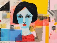 Plakat z serii abstrakcja zatytułowany Prześwit Wzroku przedstawia abstrakcyjny portret kobiety, skomponowany z różnorodnych elementów kolażu. Dynamiczna kompozycja łączy w sobie wyraziste kolory i tekstury, z fragmentami tekstu, geometrycznymi kształtami i abstrakcyjnymi formami. Centralną figurą jest twarz kobiety o prostych, ale silnych rysach, z kontrastującymi niebieską cerą, czarnymi włosami i czerwonymi ustami, co nadaje jej wyrazistości i głębi. Tło składa się z żywych żółtych i pomarańczowych plam, przeplatających się z chłodnymi błękitami i neutralnymi odcieniami, tworząc wrażenie różnorodności i dynamizmu współczesnego życia. Plakat ten może stanowić inspirujący element dekoracyjny w nowoczesnych przestrzeniach mieszkalnych, galeriach sztuki lub kreatywnych miejscach pracy, stymulujący wyobraźnię i refleksję nad naturą sztuki.