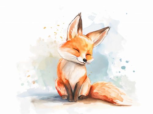Plakat z serii wnętrza zatytułowany Zadowolony Lisek. Ten uroczy akwarelowy plakat przedstawia uśmiechniętego, zadowolonego lisa, który z zamyśleniem spogląda w dal, otoczony przez delikatne akcenty akwareli. Kolorowe plamy i rozbryzgi tuszu dodają lekkości i ruchu kompozycji, podkreślając beztroski charakter ujęcia. Idealnie nadaje się do przestrzeni pełnych ciepła i radości, takich jak pokoje dziecięce, kreatywne pracownie, czy przytulne kąciki do wypoczynku w domu. Ten plakat z pewnością wprowadzi element radosnego spokoju i pozytywnej energii do każdej przestrzeni.