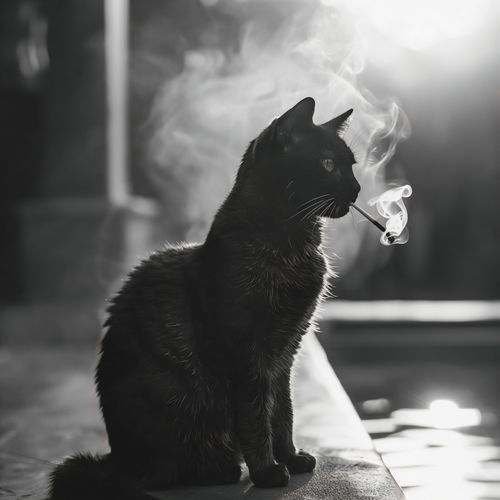 Plakat z serii wnętrza zatytułowany Kocia Przerwa. Na tym plakacie uwieczniono czarnego kota siedzącego na krawędzi, zanurzonego w promieniach rozproszonego światła, które podkreślają jego błyszczącą sierść i wyraziste kontury. Kocie wąsy delikatnie zarysowane w kontraście ze światłem nadają mu wyrazistości, a unoszący się dym tworzy aurę tajemniczości. Jest to plakat zarówno elegancki, jak i zagadkowy, idealny dla miłośników zwierząt i minimalistycznego designu. Plakat ten będzie pasował do każdego wnętrza, od klasycznego po nowoczesne, dodając subtelnego charakteru i spokoju.