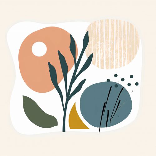 Plakat z serii boho zatytułowany Pastel Owoców.Plakat przedstawia stilizowany obraz natury, gdzie organiczne formy i kształty łączą się w nieoczywisty sposób. W kompozycji dominuje duża, pastelowa forma przypominająca owoce lub słońce, która kontrastuje z subtelnym tłem w delikatnych odcieniach beżu ozdobionym wertykalnymi liniami. Obok widnieją płynne, ciemnozielone liście oraz zaokrąglone, geometryczne formy w odcieniach szarości i musztardy, uzupełnione o subtelne graficzne akcenty. Plakat będzie pięknie komponował się w przestrzeniach poszukujących elementów natury w abstrakcyjnej, uproszczonej formie, idealnie nadając się do nowoczesnych salonów, kreatywnych przestrzeni pracy lub jako delikatny akcent w minimalistycznej sypialni.