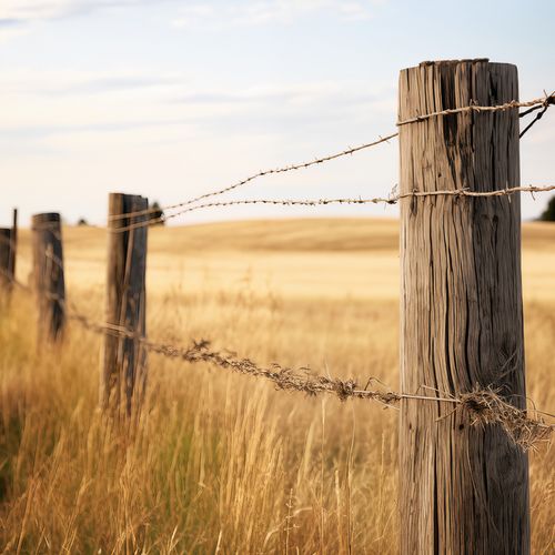Plakat z serii pejzaże zatytułowany Płot na Polu. Obraz przedstawia rustykalny drewniany płot z drutem kolczastym, ciągnący się wzdłuż złocistego, zbożowego pola. Delikatne odcienie złota i brązu, w połączeniu z subtelnie rozmytym tłem, tworzą poczucie głębi i przestrzeni. Ten spokojny, wiejski krajobraz wprowadza atmosferę relaksu i odprężenia, idealnie nadając się do wnętrz inspirowanych naturą lub jako ukojenie dla zaganianych mieszkańców miast. Doskonały do salonu, jadalni lub jako element wypoczynkowej przestrzeni.