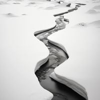 Plakat z kolekcji pejzaże zatytułowany Meandry Mrozu. Ten plakat przedstawia sinący lodowiec, którego szczeliny przecinają śnieżnobiałą powierzchnię, tworząc naturalne dzieło sztuki. Monochromatyczna paleta barw, gdzie biel śniegu kontrastuje z głębokim czerniami wód lodowcowych, przemawia do wyobraźni i wywołuje uczucie surowości oraz majestatu natury. Doskonały do wnętrz o minimalistycznym designie lub jako mocny wizualny akcent w przestrzeniach takich jak salony, biura i lobby hotelowe, gdzie może inspirować do refleksji nad pięknem i siłą przyrody.