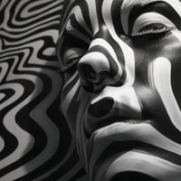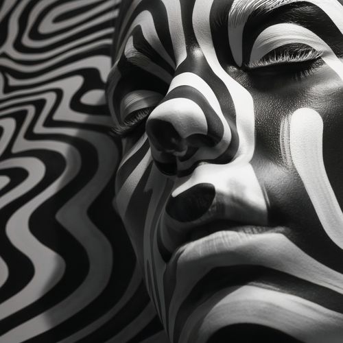 Plakat z serii abstrakcja zatytułowany Wtop Się We Mnie. Ten monochromatyczny plakat przedstawia zbliżenie na twarz kobiety, której skórę zdobią hipnotyzujące, czarno-białe wzory przypominające zebry. Skontrastowane linie zygzakowato przecinają płaszczyznę obrazu, tworząc złudzenie ruchu i głębi. Plakat jest przykładem wyrafinowanego połączenia sztuki portretowej z abstrakcyjnym designem, idealny do pomieszczeń o minimalistycznym lub nowoczesnym wnętrzu, takich jak galerie sztuki, nowoczesne biura, a także jako oryginalny akcent w domowym salonie. Jego unikalny styl przyciąga wzrok i zmusza do refleksji, stanowiąc idealny temat do rozmów w przestrzeniach społecznych.