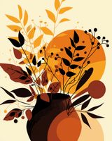 Plakat z serii minimalistyczne zatytułowany Bukiet Owoców. Grafika ta przedstawia estetyczny układ liści i owoców jesieni w klasycznym, ciemnym wazonie, umieszczony na tle ciepłych, okrągłych form w tonacji jesiennej palecie. Gama kolorów rozciąga się od intensywnego mahoń do miękkiego złota, przywołując uczucie ciepła, które towarzyszy złotej porze roku. Przemyślne rozpryski i drobne detale nadają całości dynamiki, sugerując żywotność i obfitość jesiennych plonów. Plakat ten idealnie odnajdzie się w przytulnych wnętrzach, wnosić będzie atmosferę spokoju i refleksji. Idealnie nadaje się do salonów, pokojów dziennych lub przestrzeni, gdzie dominuje naturalna paleta barw i materiałów.