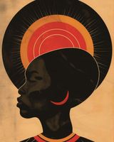 Plakat z serii abstrakcja zatytułowany Gorące Promienie to urzekający portret profilu kobiety, który wyraża siłę i spokojną godność. Jej sylwetka jest wyraźna i zdecydowana, z podkreślonymi, mocnymi liniami, a tło za jej głową tworzy aureolę w ciepłych odcieniach, od ciemnego poprzez jaskrawe odcienie pomarańczu do złota, co może symbolizować wschód lub zachód słońca. Te koncentryczne kręgi przypominają również halo, które często widnieje na obrazach świętych lub ikonach, nadając postaci niemal boski wymiar. Czarny kolor sylwetki w połączeniu z bogatymi, złotymi odcieniami tworzy mocny kontrast, który przyciąga wzrok i sugeruje tajemnicę oraz niezwykłą wewnętrzną siłę. Plakat ten jest elegancki i wyrazisty, doskonały do każdego wnętrza, w którym chce się podkreślić piękno, siłę i kulturowe bogactwo.