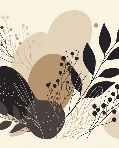 Plakat z serii minimalistyczne zatytułowany HarmonijkaPrzyrody. Ta grafika to estetyczna kompozycja abstrakcyjnych, organicznych kształtów i delikatnych motywów florystycznych w tonacji ziemi. Wykorzystanie różnych odcieni brązu, beżu oraz głębokiej czerni tworzy spokojną, ale i wyrafinowaną paletę barw. Kontrastowe, ciemne elementy florystyczne są pięknie zrównoważone przez jasne tło, nadając całości uczucie lekkości i elegancji.Jest to idealny wybór dla osób, które szukają subtelnego, ale wyrazistego elementu dekoracyjnego do swojego domu lub biura.