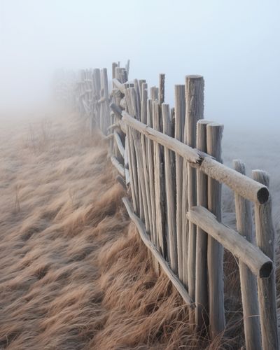 Plakat z serii pejzaże zatytułowany Mgła nad Wydmami. Prezentuje on eteryczny widok na drewniane ogrodzenie, które wiedzie przez poszarpane, suchą trawę wydm. Delikatna mgła otula scenę, nadając jej tajemniczość i spokój, a subtelne odcienie szarości i beżu tworzą uczucie miękkości i ciepła. Ten plakat idealnie oddaje atmosferę wyciszenia i rozmyślania, sprawiając, że jest doskonałym wyborem dla przestrzeni, które mają na celu uspokojenie i relaks, jak spa, pokoje medytacyjne, czy ciche kąciki w domach. To także piękny element dekoracyjny dla wnętrz inspirowanych naturą i spokojem przyrody.