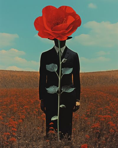 Plakat z serii abstrakcja zatytułowany Obserwator zza Maku. Ten plakat przedstawia surrealistyczny obraz człowieka z głową w formie rozkwitającego czerwonego maku, stojącego na polu pełnym kwiatów tej samej rośliny. Kompozycja gra na kontraście między ludzką postacią a bujnością natury, podkreślając połączenie człowieka z otaczającym go światem. Idealny dla przestrzeni szukających głębi artystycznej i wizualnej prowokacji, ten plakat będzie doskonałym dodatkiem do nowoczesnych salonów, galerii sztuki czy przestrzeni kreatywnych, gdzie może inspirować i wywoływać refleksję.