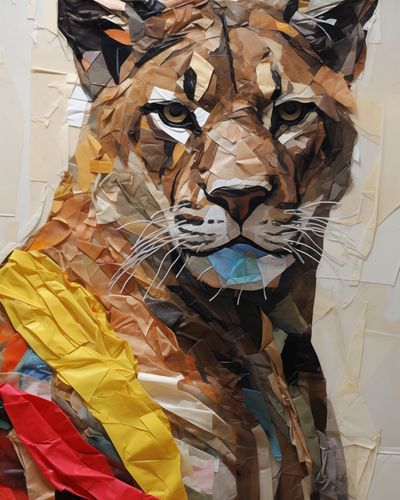 Plakat z serii wnętrza zatytułowany Papierowy Tygrys. Ta oryginalna i kreatywna ilustracja przedstawia portret tygrysa wykonany techniką kolażu z kolorowych kawałków papieru. Wykorzystanie różnych odcieni i tekstur papieru nadaje dziełu głębi i dynamiki, a jednocześnie zachowuje realistyczny obraz dzikiego zwierzęcia. Plakat ten jest wyjątkowym dziełem sztuki, które przyciąga wzrok i inspiruje, idealny dla miłośników natury i oryginalnego designu, świetnie sprawdzi się w nowoczesnych salonach, gabinetach lub jako wyrazisty akcent w przestrzeniach publicznych takich jak galerie sztuki czy kawiarnie.