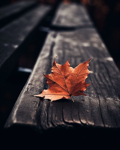 Plakat z serii natura zatytułowany Pojedynczy Liść. Ten plakat przedstawia pojedynczy, jasnobrązowy liść klonu, spoczywający na ciemnym, drewnianym tle ławki parkowej. Głębokie, nasycone kolory i wyraźny kontrast między liściem a ciemnym tłem, wywołują uczucie intymności i refleksji. Idealny dla przestrzeni, które chcą oddać hołd zmienności sezonów i subtelnemu pięknu natury, ten plakat wprowadza ciepło i spokój do każdego domu, biura, czy miejsca publicznego, zachęcając do chwili zadumy i spokoju.