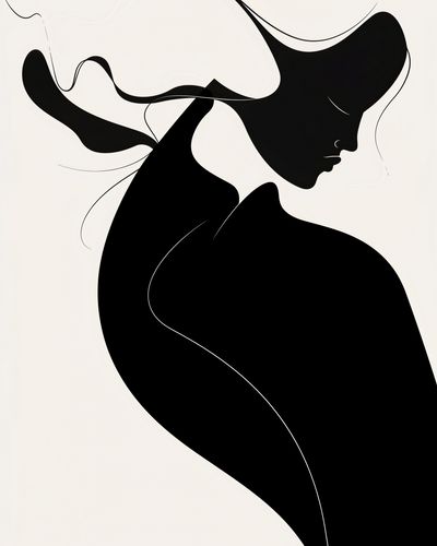 Plakat z serii minimalistyczne zatytułowany Redukcja do Zarysu.Na tym obrazie mamy przedstawiony minimalistyczny, ale wyrafinowany portret kobiety. Czarne i białe barwy stworzyły silny kontrast, a użycie wyłącznie tych dwóch odcieni nadaje dziełu ponadczasowy charakter. Postać jest zredukowana do zarysów, a jednocześnie zachowuje subtelność i gracje, szczególnie w delikatnym zarysie twarzy i falowaniu włosów. Ta praca może być interpretowana jako hołd dla klasycznej piękności i elegancji, oddanej w prostym, lecz potężnym wizualnie.