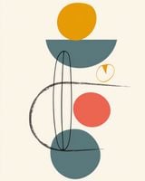 Plakat z serii boho zatytułowany Równe Kompozycje.Plakat ten czerpie z koncepcji równowagi w sztuce, ukazując złożone kształty i kolory. Kulista forma w odcieniu musztardowym spoczywa na większej, niebieskawej powierzchni, a wszystko to jest podparte przez delikatne linie i kształty, które zdają się być w ruchu. Malutkie serce w odcieniu pomarańczowym dodaje delikatnego akcentu, a ciepłe i spokojne kolory komponują się w wizualną poezję. Ten plakat wniesie harmonię i subtelny dynamizm do każdego nowoczesnego wnętrza, pasując do przestrzeni, które cenią sobie prostotę i wyrafinowanie. Jego uniwersalność sprawdzi się w domowych salonach, biurach, a także w przestrzeniach publicznych takich jak kawiarnie czy lobby, gdzie sztuka ma za zadanie uspokajać i inspirować.