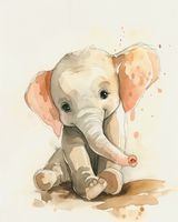 Plakat z serii wnętrza zatytułowany Siwy Słonik to czarująca akwarela przedstawiająca małego, siwego słonia z dużymi, wyrazistymi oczami i rozłożystymi uszami w odcieniach różu. Delikatność i ciepło ilustracji wydobywają ujmującą niewinność młodego słonia. Rozpryski akwareli wokół postaci dodają dynamiki i lekkości, sugerując radosną zabawę i beztroskę. Ten plakat wprowadza atmosferę spokoju i radości, idealnie nadają się do ozdobienia przestrzeni dziecięcej, takiej jak pokoje maluchów, przedszkola, sale zabaw czy kąciki czytelnicze w bibliotekach. Jego urokliwy obraz może inspirować młode umysły do marzeń i pozytywnego myślenia.